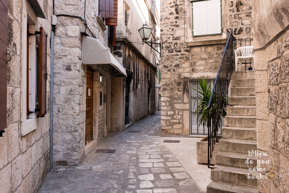 The medieval village is on a little island, you don’t have beaches. Close to it there is the island of Čiovo. You can find big or hidden beaches can fit to your taste. Water is warm and clear. The most popular area is in Okrug Gornji, you can reach by foot (40 minutes), by bike, by taxi or rent a scooter, I didn’t see any public transportation.