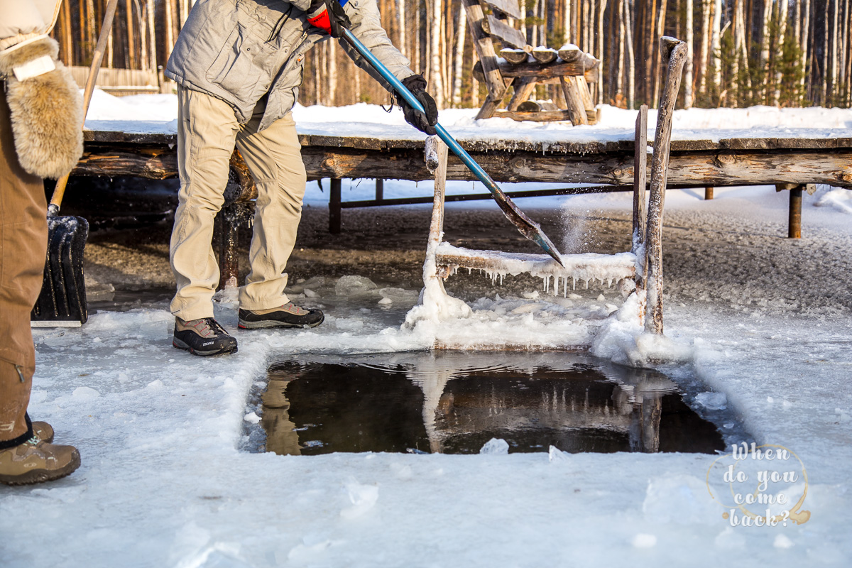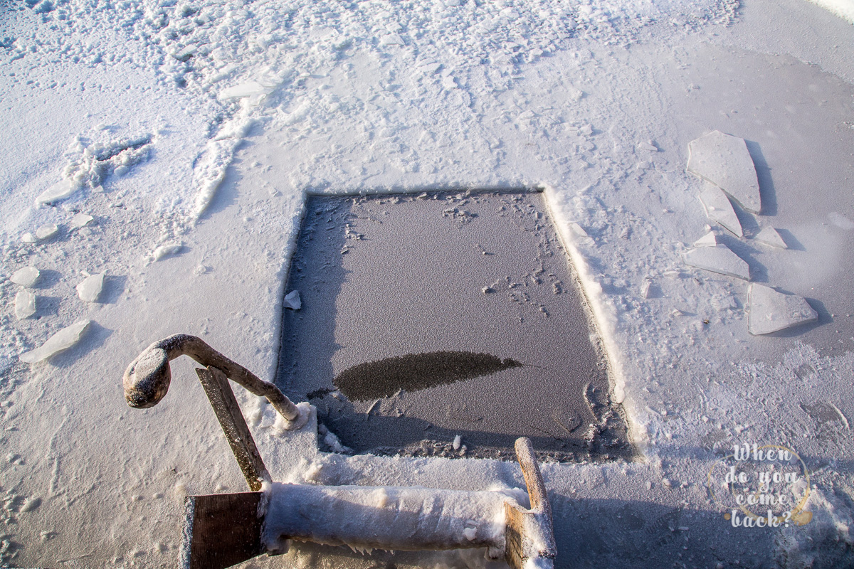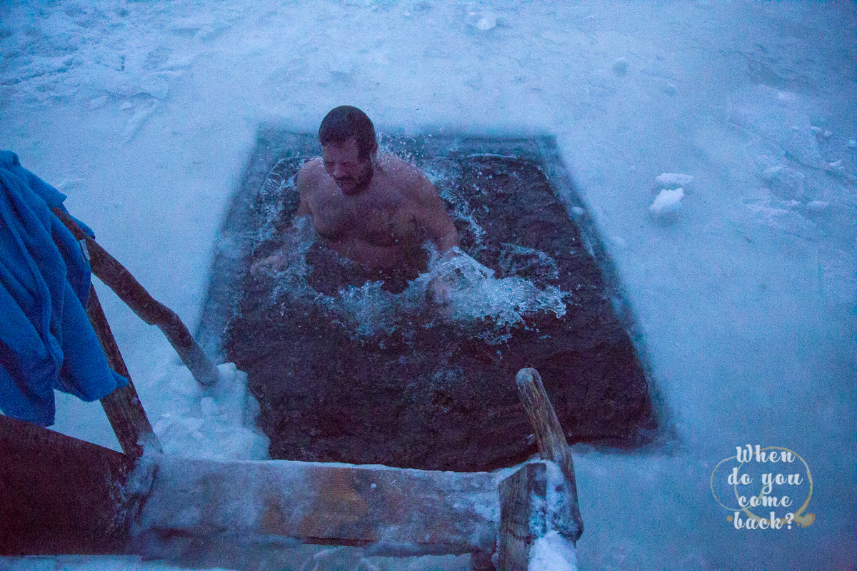 The perfect ending after sauna is, of course, a deep bath in iced lake or snow. Not one or two but three times and with your head under the water. If you have to do, you must do the real one. After this cold bath you shoould stay few seconds outside in the snow to feel your body and I promise you, you will feel everything.