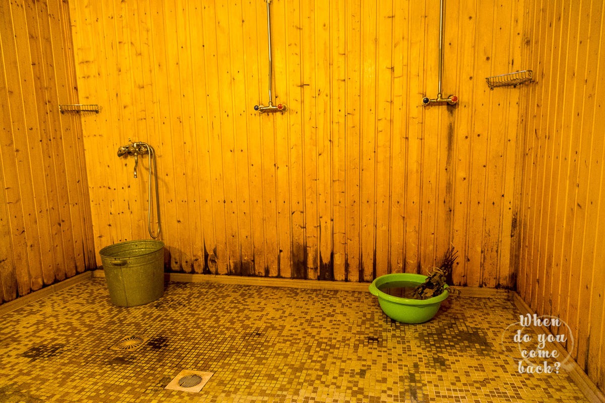 In Banya there could be three different room. First is the changing room, to change clothes and to relax after sauna or cold water. Second room is the showers. Where is good to wash yourself before and after sauna. Third room is the sauna. Temperature could be 90°C and the difference between finnish sauna is the humidity. Water is part of the game. There is a stove inside when periodically a bowl of water is launched inside and this create a wave of extremely hot steam. You will feel! The basic concept of Banya are the extremes. Constantly changing hot and cold. Outside it was -25°C, more than 100°C of difference.